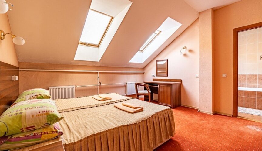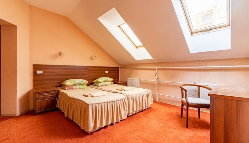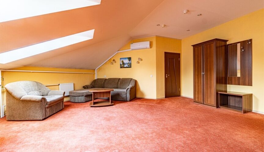 Номер вмещает до 6 человек и имеет общую площадь 65 м². В номере три комнаты: две спальни и гостиная. В каждой спальне есть по две односпальные кровати, в гостиной — диван, два кресла, шкаф и телевизор.