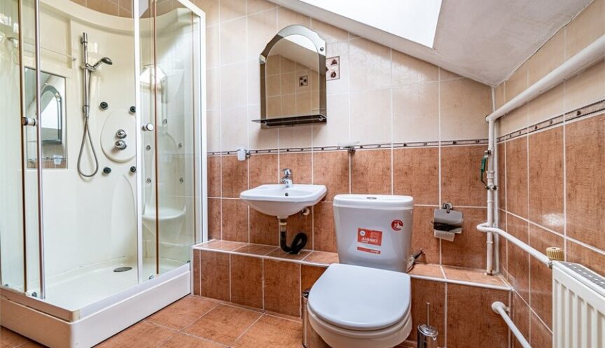 В номере есть два санузла, в каждом из которых установлены ванна или душевая кабина, туалет и раковина. Гостям предоставляются банные полотенца.